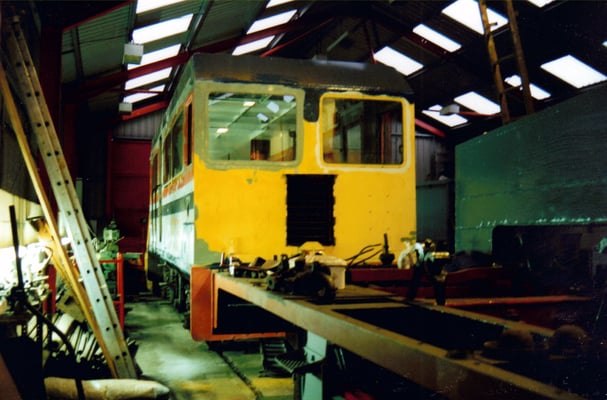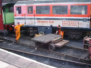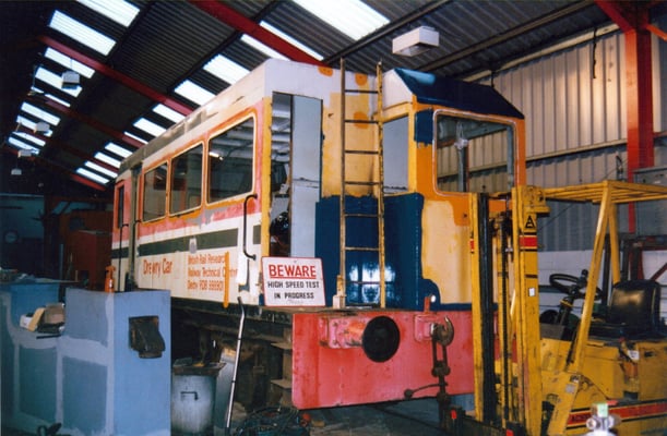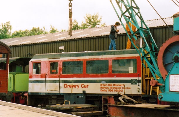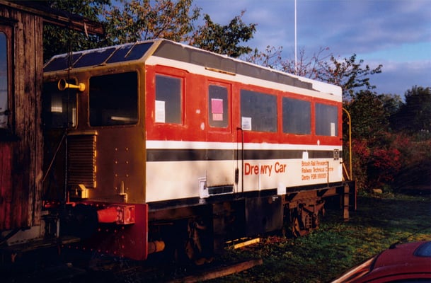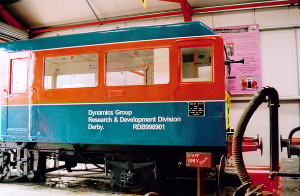 The vehicle would save hiring class 25's and crews, which cost approximately £160 for two shifts back in 1976. The vehicles are believed to have arrived at Old Dalby early in 1977 and 998901 had its number prefixed with an 'R' to indicate that it was a Research Centre vehicle. It made several visits to Derby works, the last occasion believed to have been in 1987 when it was hauled by 97201 (formerly D5061 & 24061, now preserved on the North Yorkshire Moors Railway) for body repairs and repaint. From documents held by the Society it is known that it was in use until October 1990 at the latest. Both vehicles were purchased from Old Dalby by the EM2 Locomotive Society in November 1997, with the same intention as the Technical Centre staff had back in 1976 - make one good vehicle out of the two and scrap the remains.