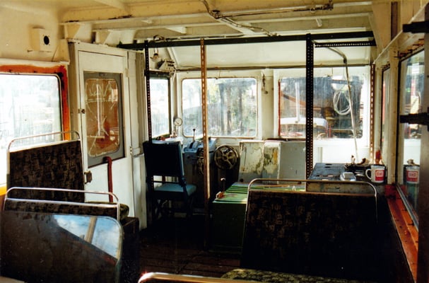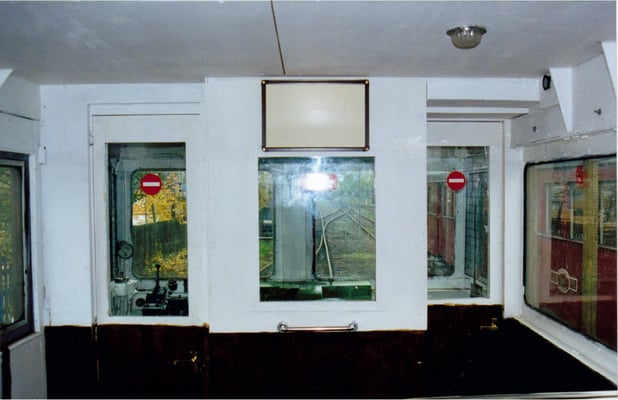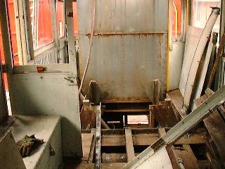 The vehicle is diesel powered and has a maximum speed of 23.1mph! It was originally designed to work at a speed as low as 1.5 mph while inspection of the overhead line is in progress. It was fitted with a hydraulically operated inspection tower for this purpose, though this has been removed in Society ownership. As can be seen from the pictures, the two ends of the vehicle are completely different, one end having a recess for the ladder to the inspection platform.