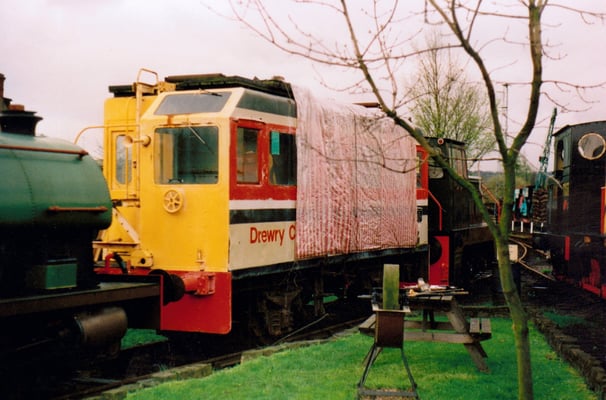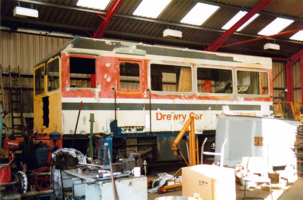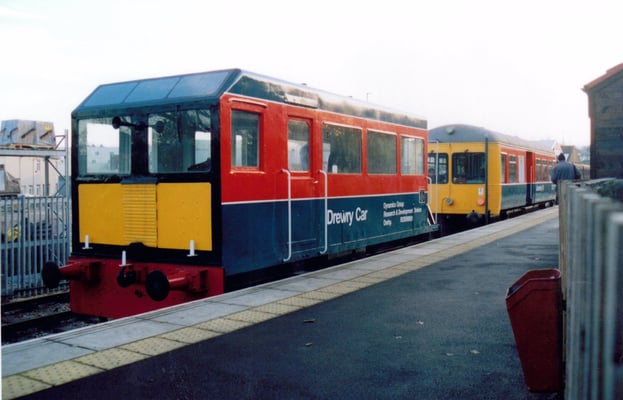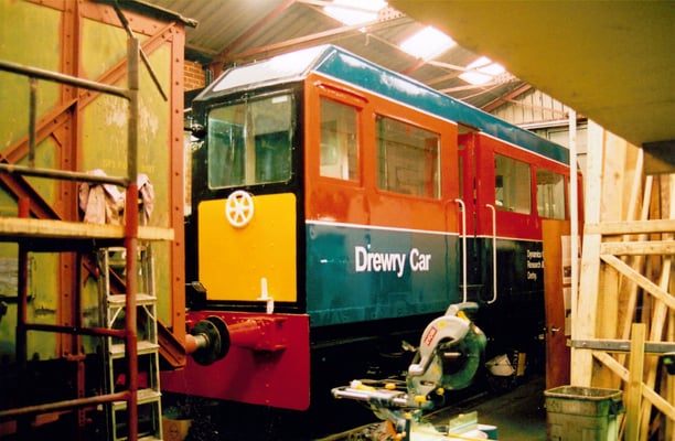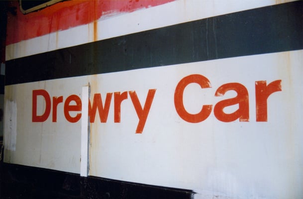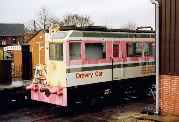 This is one of two vehicles built by the Drewry Car Company in 1950 for British Railways for overhead line inspection and maintenance. They were works numbers 2267 & 2268, and were given the numbers DB998900 & DB998901 by British Railways. This vehicle (DB998901) was originally used on the Manchester - Sheffield - Wath (Woodhead) and its sister was used on the Great Eastern electrification scheme. By 1968 both vehicles had gravitated on Colchester overhead line depot, neither being used outside the depot since that date, although 998901 had been used in the depot sidings "on the odd occasion" up to 1975. The vehicles were offered for disposal on the Eastern Region 'surplus to requirements' list in late 1976. They were duly inspected by Derby Technical Centre staff, who were erecting non-operational overhead line equipment on their test track at Old Dalby in Leicestershire (in connection with the APT project?). They decided that one good vehicle could be built from the two and the remains scrapped.